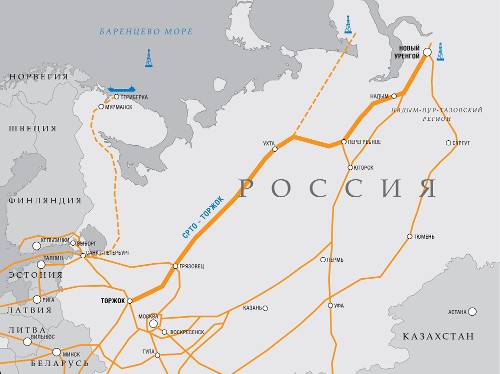 Трасса газопровода пролегает от Уренгойского месторождения в Западной Сибири до г. Торжка, где находится одна из узловых точек Единой системы газоснабжения России. Протяженность газопровода - 2200 км. Количество компрессорных станций - 13 (общей мощностью 968 МВт). Проектная производительность - 20,5–28,5 млрд куб. м в год на различных участках.